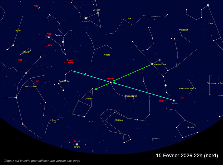 Constellation circumpolaire (c’est à dire qui tourne autour de l’étoile polaire sans jamais disparaître sous l’horizon), elle est le repère fondamental pour trouver l’étoile polaire et les autres constellations principales du ciel