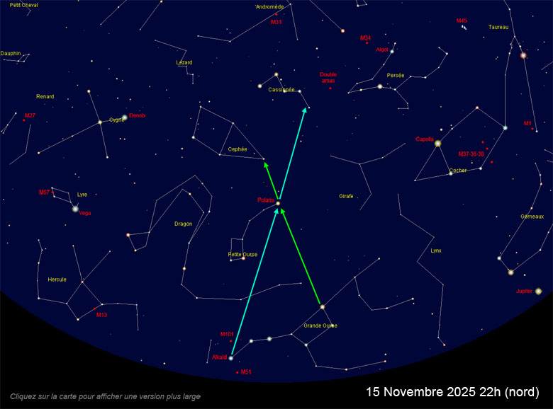 Constellation circumpolaire (c’est à dire qui tourne autour de l’étoile polaire sans jamais disparaître sous l’horizon), elle est le repère fondamental pour trouver l’étoile polaire et les autres constellations principales du ciel